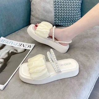 Dép Đế Dày Cao Gót Đính Nơ Thời Trang Mùa Hè Cho Nữ
