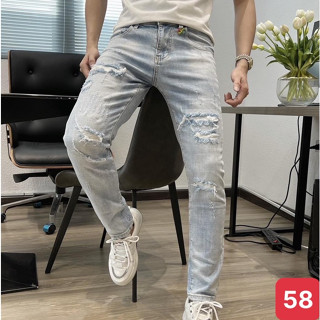 Quần jean nam rách gối to màu xanh nhạt bạc chất jeans bò cao cấp co dãn 4 chiều rin form dáng skinny Q67 mẫu mới