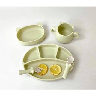 Bluemama set ăn dặm ( khay, cốc gấu, bát gấu, set thìa dĩa)