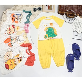 Bộ quần áo trẻ em tay cộc quần dài Alibaba9 màu cho bé trai bé gái, vải thun lạnh cao cấp 12-20kg