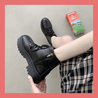 Giày bốt nữ cổ cao khoá cạnh chất da lì siêu hot- Bốt ulzzang cao cấp