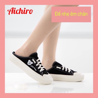 Giày sục thể thao hình gấu thêu nổi đế bánh mì 3cm