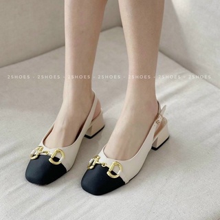 Giày sandal dáng slingback nữ mũi tròn phối khoá xinh xắn đế 3cm 2 màu đen trắng phong cách công sở nữ tính - Mã G55