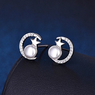 Bông Tai Bạc 925 Hình Trăng Sao Đính Ngọc Trai Lấp Lánh Phong Cách Hàn Quốc Thời Trang Cho Nữ-S1