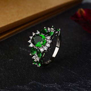 Nhẫn Hở Đính Đá Xanh Lá Cây Hình Mũi Tên 1 Lớp Trong 1
