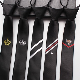 Cà Vạt Lụa Polyester Màu Trơn Thêu Hình Vương Miện 6cm