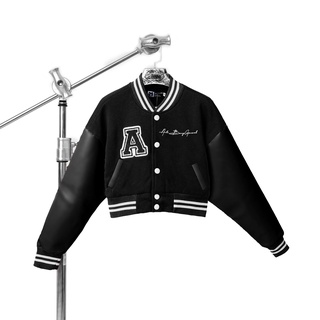 AITHER STUDIO Áo khoác Croptop - Varsity Croptop thêu xù tay da