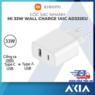 Củ sạc nhanh Xiaomi 33W Wall Charger 1A1C AD332EU quốc tế chân tròn, Cốc sạc nhanh PD, 2 đầu ra Type A và Type C