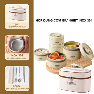 Hộp đựng cơm inox giữ nhiệt văn phòng AKIHO tặng kèm thìa đũa tiện dụng mang đi làm