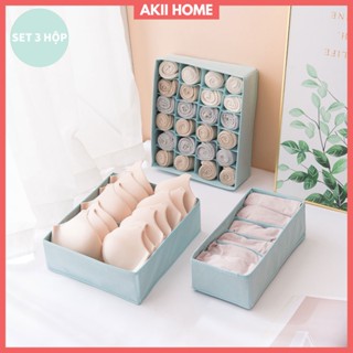 Set 3 hộp đựng đồ lót tất vớ đa năng nhiều ngăn tiện lợi, gấp gọn dễ dàng Huyna Mart TD48