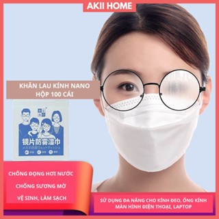 Khăn lau kính Nano chuyên dụng, hộp 100 miếng, chống bám hơi nước đi mưa, đeo khẩu trang Akii Home NC80