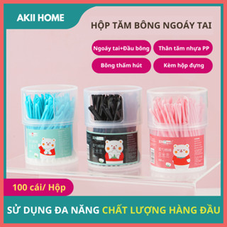 Hộp 100 tăm bông 2 đầu vệ sinh tai, ngoáy tai, lấy ráy tai, làm đẹp Akii Home NC75