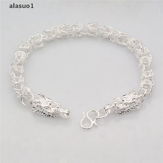 [alasuo1] Vòng Đeo Tay Dây Xích Mạ Bạc Hình Rồng Thời Trang Mới Làm Quà Tặng Cho Nam [VN]