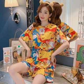 Đầm mặc nhà hoạt hình dễ thương, chất thun co giãn 4 chiều mịn mát thấm hút mồ hôi có size đại