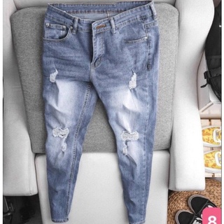 Quần Jean Nam Dài Rách Gối ALLEN STORE Siêu Hot , Jean Cao Cấp, Vải Cotton Co Giãn Mạnh, Dày Dặn,Phom Body AL61
