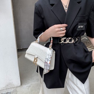 AlphaZ Túi Đeo Vai / Xách Tay Dáng Vuông Nhỏ Nắp Gập Họa Tiết Da Cá Sấu Phối Dây Xích Đơn Giản Hợp Thời Trang Mới Dành Cho Bạn Nữ Làm Việc