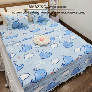 Bộ 5 món ga gối kèm chăn hè trần bông 3 lớp Amazing Bedding cao cấp chất cotton poly