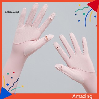 1 Đôi Găng Tay Chống Nắng Bằng Lụa Lạnh Màu Trơn Thiết Kế Lỗ Xỏ Ngón Tay Thời Trang Mùa Hè