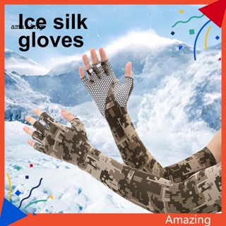 1 Cặp Găng Tay Chống Nắng Bằng Lụa Lạnh Thấm Hút Mồ Hôi Thích Hợp Cho Mùa Hè