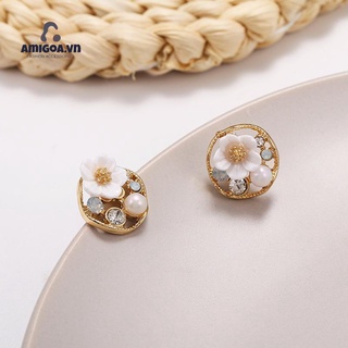 ✨✨Bông Tai Mạ Bạc 925 Hình Hoa Trà Đính Kim Cương Ngọc Trai Cao Cấp Phong Cách Retro 1