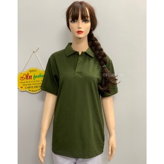 Áo thun có cổ màu xanh rêu vải poly Thái cao cấp cho nam nữ _ Hình chụp thật