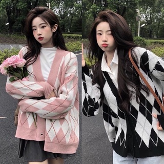 Áo khoác len Cardigan hoạ tiết kim cương dáng suông form rộng