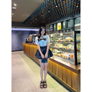Set Áo Pha Tay Bồng Kèm Chân Váy Li Cạp Có Ảnh Thật