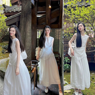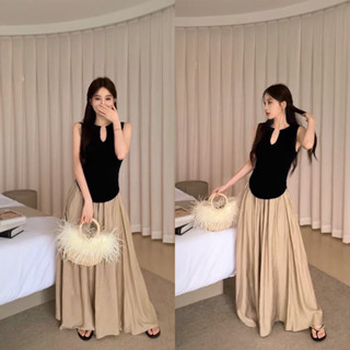 Sét Áo Ba Lỗ Zíp Cổ U Kèm Chân Váy Đũi Dài Có Ảnh Thật