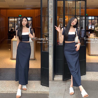 Sét Áo Hai Dây Buộc Vai Kèm Chân Váy Denim Dáng Dài Có Ảnh Thật