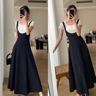 Sét Váy Yếm Dáng Dài Xoè Kèm Áo Thun Trắng Có Ảnh Thật