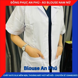 Áo Blouse, blu, blue cho dược sĩ, y tá, kỹ thuật viên, spa tay ngắn thân ngắn nam/nữ vải kate silk