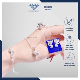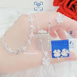 Bộ dây chuyền - lắc tay - nhẫn và khuyên tai cỏ 4 lá, chuẩn bạc ta bao sáng không đen - Anchi jewelry