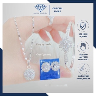 Bộ Dây chuyền - Lắc tay - Nhẫn và Bông tai hình bông hoa tuyết đính đá, chuẩn bạc 925 cao cấp - Anchi jewelry.