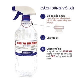CỒN 70 ĐỘ BIDOPHA có vòi xịt - CHAI 1000 ml- rửa tay, sát khuẩn