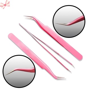 Nhíp Inox Uốn Cong/Thẳng Màu Hồng Độ Chính Xác Cao Dùng Nối Mi/ Nối Mi