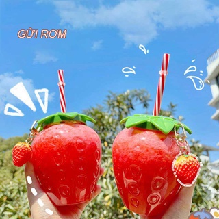 Bình Nước Nhựa Có Ống Hút In Hình Dâu Tây Dễ Thương 500ml