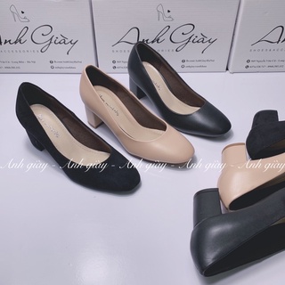 CG73 - Giày cao gót da lì mũi nhọn gót vuông 5p VNXK da mềm có lót mút đi ôm và êm chân, gót chắc chắn phù hợp đi làm