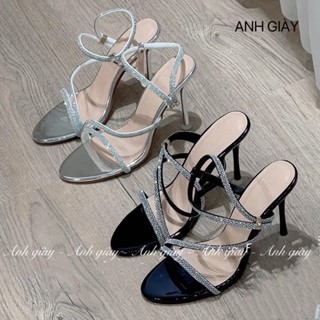 SD21 - Sandal quai ngang đính đá dây chéo gót nhọn 6p, kiểu dáng trẻ trung , hàng Việt Nam xuất khẩu chắc chắn