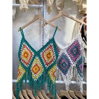 Áo 2 dây len móc phối màu đi biển Hàng QC