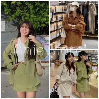 Bộ Áo Sơ Mi Chân Váy Chữ A Vải Nhung 🦋 Set Somi Nữ Dài Tay Kèm Váy Ngắn Cạp Cao 3 Màu 🦋