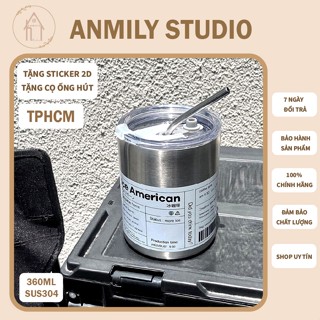Cốc giữ nhiệt văn phòng ANMILY CUP Iced Americano 360ml Inox304 có ống hút kèm theo phong cách Bắc Âu | tặng sticker2D