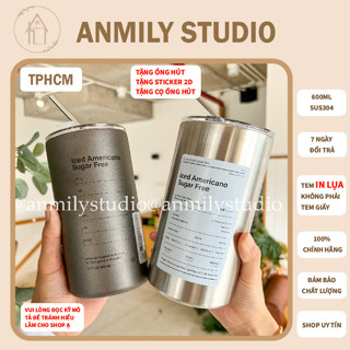 Ly giữ nhiệt văn phòng ANMILY CUP Iced Americano 600ml bằng thép không gỉ 304 có ống hút kèm theo | tặng sticker 2D