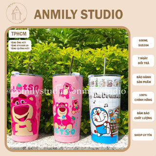 Ly giữ nhiệt gấu dâu I AM LOTSO ANMILY CUP 600ml dễ thương vật liệu sus304 an toàn có ống hút kèm theo| ANMILYSTUDIO