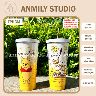 Ly giữ nhiệt gấu POOH ANMILY CUP 750ML vật liệu sus304 an toàn khi sử dụng, có ống hút kèm theo, tặng nút cao su