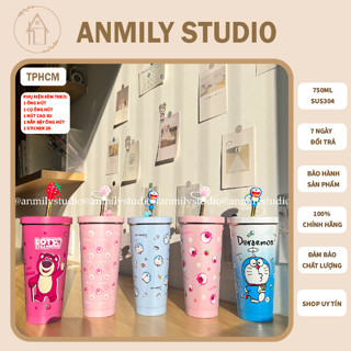 Ly giữ nhiệt cute in hình hoạt hình 750ml ANMILY CUP SUS304 kèm ống hút cọ ống hút và nút chống tràn| ANMILYSTUDIO