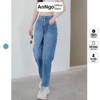 Quần jean nữ baggy ống bo rách gối , chất vải Jean Denim không co giãn, dày bền màu AnNgo - AT135