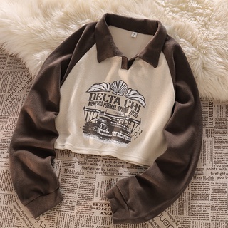 NUZIRO Áo thun polo tay dài dáng rộng màu tương phản thời trang dành cho nữ