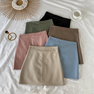 NUZIRO Chân váy lưng cao ôm hông màu trơn chất liệu da PU thời trang Hàn Quốc dành cho bạn nữ