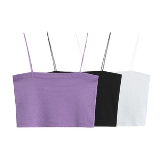 NUZIRO Áo croptop hai dây màu trơn gợi cảm cho nữ