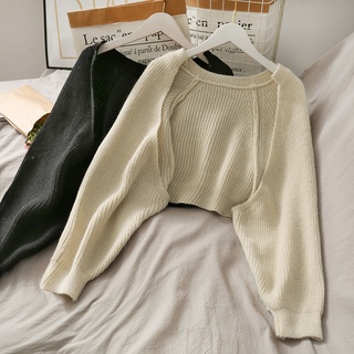 NUZIRO Áo croptop dệt kim tay dài cổ tròn kiểu Hàn Quốc xinh xắn cho nữ